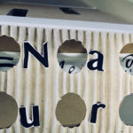 elles-ci se déplaçaient à l’extérieur pour se nicher dans un lieu adéquat. Petit à petit, tous ces dessins et manipulations ont composé un portrait de chacun des participants. Sur l’esplanade, le portrait est lié aux arbres, ils sont nombreux, plantés sur une immense longueur. Si l’on flâne du côté du parc Trembley vers le parc Beaulieu, la promenade débute par le mot TEMPS. La déambulation le long des plantations est associée à l’idée de durée. Chacun a trouvé des mots correspondant à trois périodes de sa vie : passée, présente et future, avec pour chaque phase un code couleur différent. Des fichiers informatiques ont été créés pour pouvoir découper les mots au laser sur du carton de récupération. Les mots sont installés sur les centaines de tuteurs de l’esplanade le 28 avril. Ils s’emparent aussi des poubelles, ce jour-là, elles changent d’allure. Virginie Delannoy